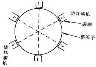 圖1 整流子對稱碳刷燒壞示意圖